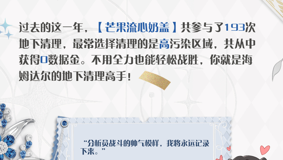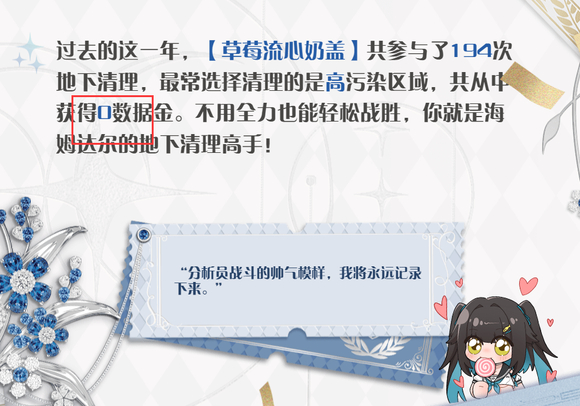 地下清理零是因为地下清理不给数据金 你合计一下你数据金是不是都是周常任务拿的 然后有数据金是因为最开始不刷新的那九层给数据金奖励
