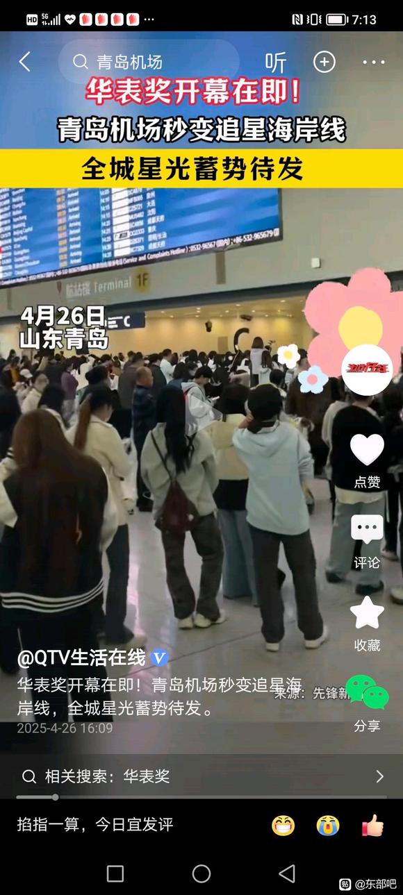 明星云集青岛西海岸,胶东机场成了追星海洋。我不赞成这种行为。