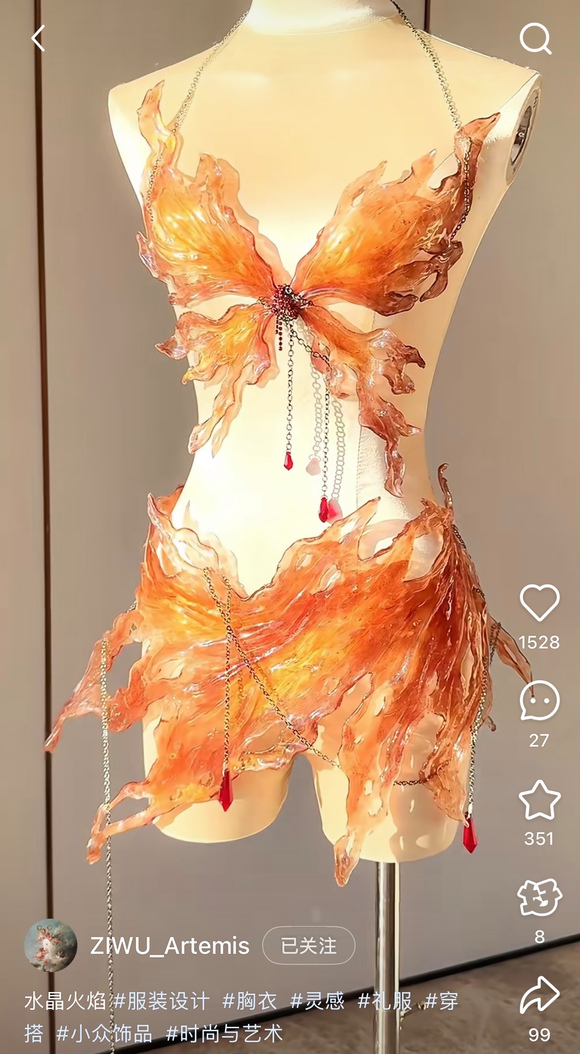 是我之前搞oc时候在📕关注的一个做硬壳感觉胸衣的博主,个人认为非常有特点和辨识度,女明星也有穿的,并且类似风格(硬壳+亮面质感+胸衣)我几乎没刷到过其他。🥚5这次鱼套的胸衣见仁见智吧(没说抄袭哈,但如果这是以闪出的肯定会被叠姐嘴抄袭哈)