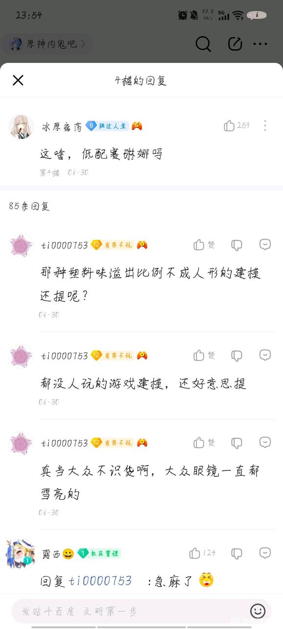 我玩星铁,是正常玩家,不过这个紫发女跟赛琳娜比起来就是一坨,过剧情的时候这个紫发女表情跟个私人一样