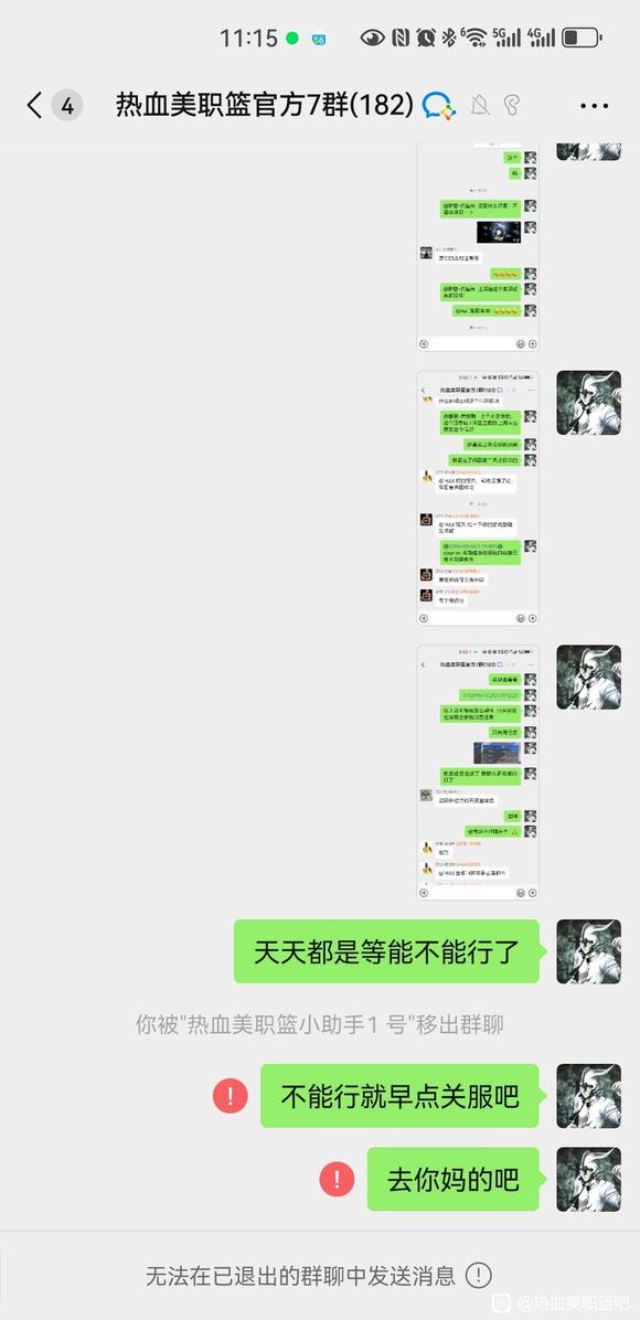 ****的B,垃圾游戏请的垃圾客服,老子提出的问题,快3个星期了不给解决,刚发了个图就给老子踢出群了,****的B