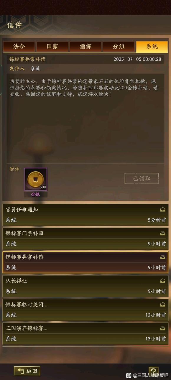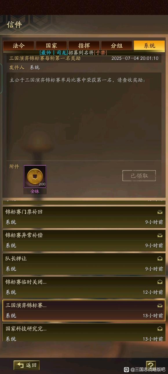 : 看出新活动参与一下。打了两个第一,准备打第三轮的时候告诉我比赛异常中止了。行吧,出来一算账,两个第一共400,加上进第二轮给400,还有官方200堵嘴费,加起来1000金猪打开邮件一看,200+600=800,连自己写明的 ...