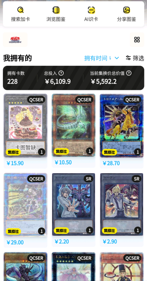 我都是看哪张卡图好看买哪张的,所以买了老多,价格飞上去的话就出手,绝不留恋。有时候命运中的相遇更令人难忘,翻卡堆时莫名有卡图戳中自己的心窝,已经不是钱的问题了。
