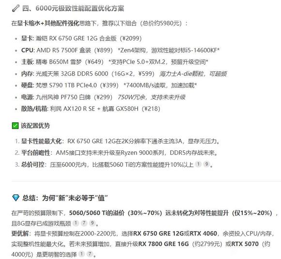 借楼,各位大佬们帮忙看一下我这个配置,也是6000以内,让Deepseek给的。