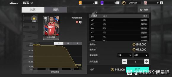 真要能跌到40w我都想抄一个了,火箭球员普遍溢价的,我也觉得身价很难跌到50w以下,但有些人会直接身价x0.85的底价卖,所以多刷刷买到45w左右的我觉得还是有戏的。
