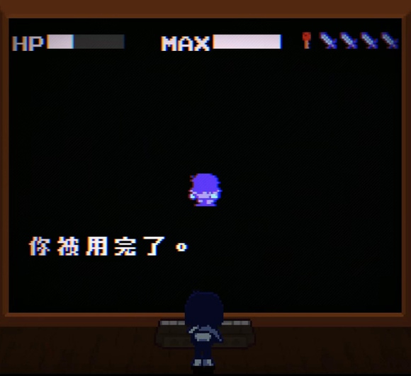 首先就是这段旁白。起初我自然而然地认为此处旁白的身份就是Eram无疑,毕竟这个大黑耗子从小游戏第一节开始就在引导我们去找它(隐藏房间的see you soon)在第三节也展现出了对话的能力(想要斗篷那就自己来拿x)但细想过后,我感觉旁白的身份或许有其他的可能性,那就是“容器”。或者,至少对话内容与容器是紧密相关的。问题就出在“你被用完了”这句话上,如果以Eram的身份来对kris说这句话,是有些突兀的:无论从哪个角度来讲,此时的kris都还没被“用完”,并且在第三节小游戏还直接找上门来抢斗篷了,何出此言呢?.那么,什么情况会导致kris不再有利用价值了?结合b面线的游戏内容,我能想出的比较合理的推测,就是红魂找到了服从性更高,与自己更适配的另一副身躯,随即抛弃了kris。“感谢你的辛勤付出,你被用完了。”再看看这句话的语调,完全就是对怨种打工仔的讥讽嘛。在游戏只更新到前两章的时候,我看到过一个推断,大概是说红魂之所以要在b面线如此对待Noelle,实际上就是想得到一个更听话,战斗力充足的容器,并大胆预测在后续章节中红魂可能会转移到Noelle身上。除了最后的“转移说”,我当时对这个观点是比较认同的,而现在看来,另一个容器的人选大抵不会是Noelle,毕竟在小游戏中她在kris之前就已经被用完了;而恰好,游戏中的确存在着一个比她更合适的选择...