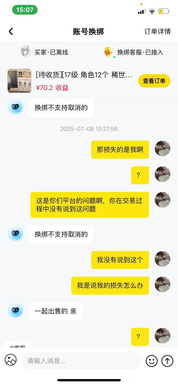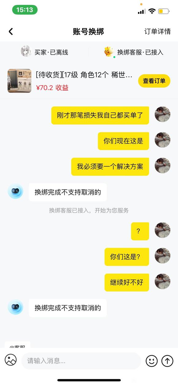取消交易换绑回来,是你的实名你跟买家协商一下,给对方点钱补偿,把你的账号要回来