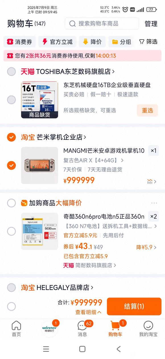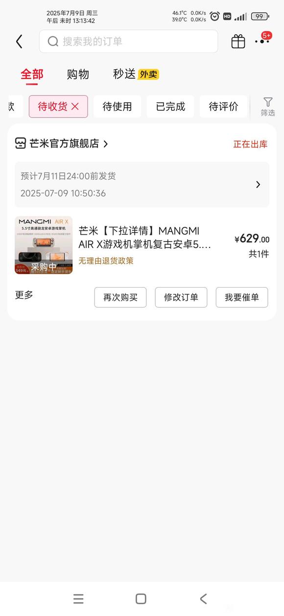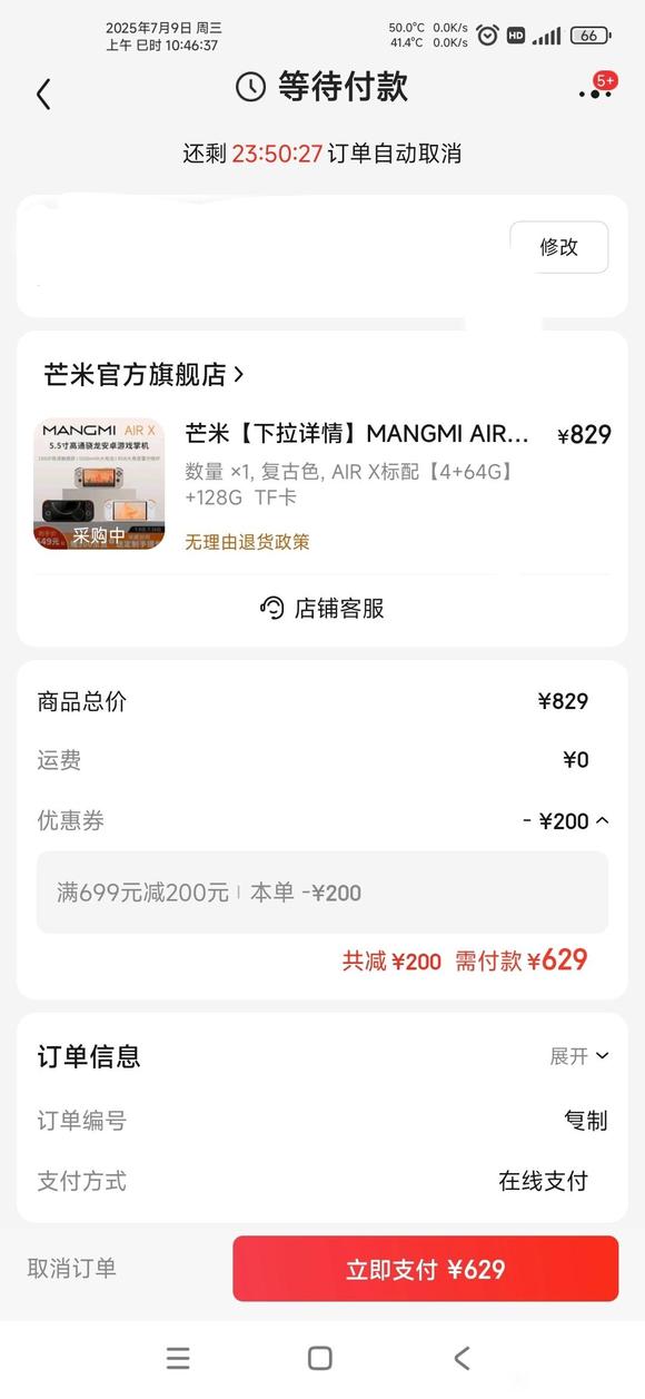 2025年7月9日9点55开始打开京东和淘宝,08分京东点击购买,自动领券支付中,始终支付页面没跳出来。又转到淘宝,一看全没货,又回到京东也是没货。过了一会儿看了有二轮预购,准备下单竟然所在区域没货,有区域限制那我结束购买。后来同事发消息说淘宝带卡的有货,我去看了,单独的机器都卖光了带128g和256g还有买,我想选复古色+128g也是没了。又回京东,发现可以买了直接下单。第一轮秒没128g和256g也是一个都没看到,第二轮还有限制后来又放开限制被商家耍的团团转,可怜的韭菜!