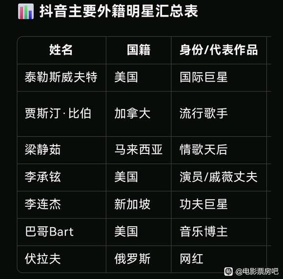 外藉主要明星入驻抖音名单汇总