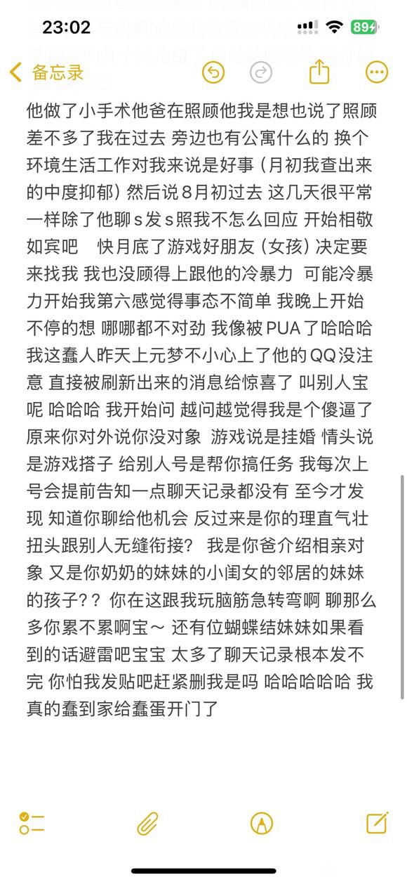: 原来你对外说你没对象游戏说是挂婚 情头说是游戏搭子 给别人号是说是帮你搞任务今早提分 扭头跟别人无缝衔接? 我是你爸介绍相亲对象 又是你奶奶的妹妹的小闺女的邻居的妹妹的孩子??你在这跟我玩脑筋急转弯呢? ...