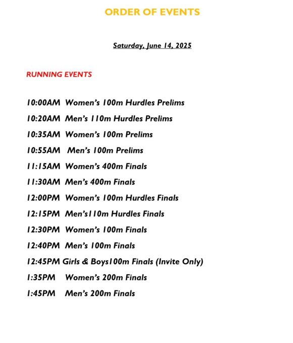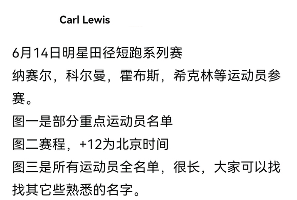 : 比赛日期:2025.6.14图2:部分重点运动员名单图3:比赛赛程(比北京时间慢12个小时)图4:各竞赛项目参赛选手-全名单