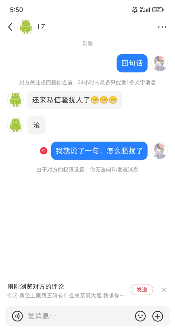 那咋了?你这种人我也拉黑。