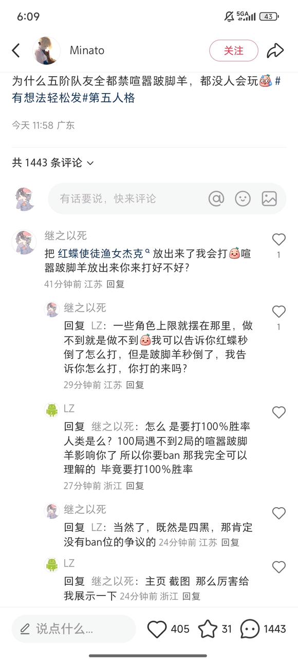 小红书是这样的,我说句觉得拉拉强就拿去上分结果就有糖13费尽心思查我游戏ID说我60胜率场次战神,我让他发图没图,报ID没ID,跟这神人斗智斗勇半天人家一句没上六阶