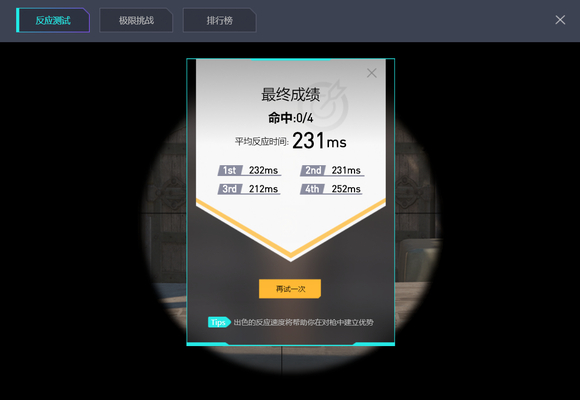 这些练反应的软件测着没啥用 心理都有预期了 反应肯定不会慢 真正的反应是实战不知道哪突然冒出来人你临场反应那是真的