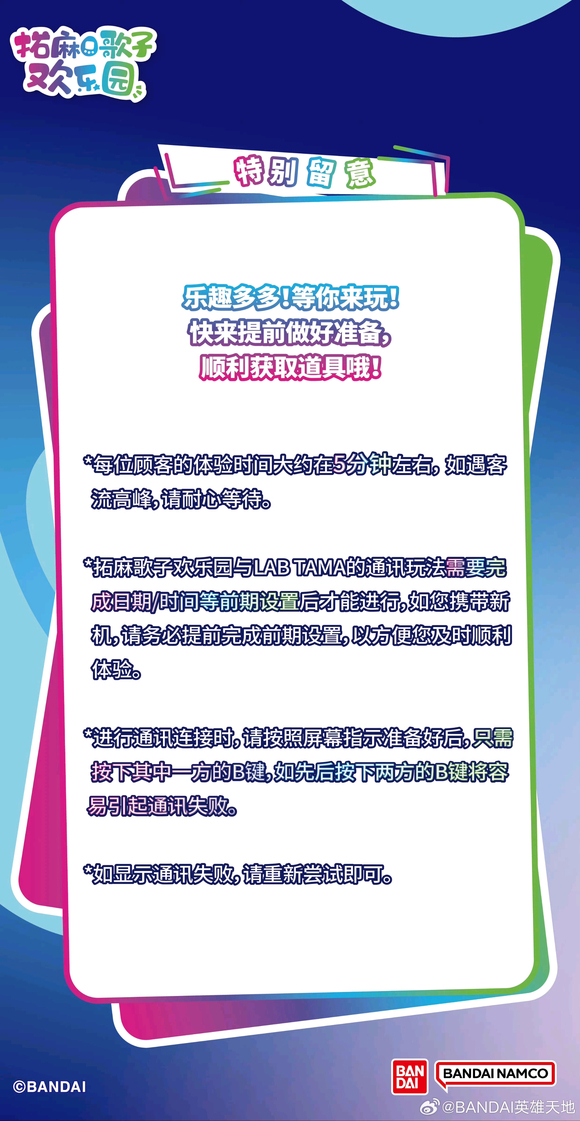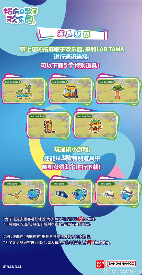 小游戏攻略:左上角总得分,右上角剩余秒数总得分与miss数影响获得的道具good:动物刚出现就点击,分数少great:动物露出笑脸再点击,分数多miss:点到空白处,会扣分水壶:小于200分望远镜:大于200分,多miss(建议miss 3次,miss会扣分,注意留意总分不要跌破200)帽子:大于200分,少miss(具体次数不清楚,建议0次)人多的时候排队,每人只能玩一次游戏,想要3道具全入手建议拉上朋友,或者逛两圈看看玩具再回来排,说不定就没人了可以慢慢刷(一不小心就买了两百的玩具,消费就这样被带起来咯)