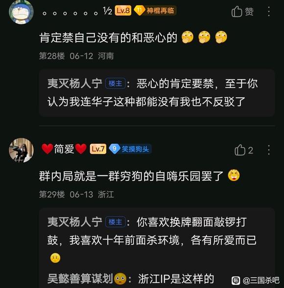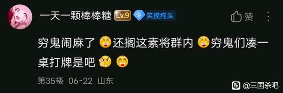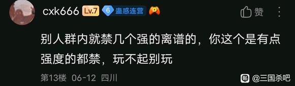 | 先叠个甲,每个人都有追求游戏体验的权利,你喜欢阴间对轰是你的事,没必要拉着所有人玩粪坑一样的路人局。不管强度怎么样,尽量照顾到每个人的游戏体验才是最重要的。 你根据禁将表骂我琼🐶的时候不妨想想你为什么这么觉得,给狗卡跪久了站不起来了却还要对着正常人哈气才是最招笑的。 禁将表除了公认的超模怪剩下的都经过了观察实战,也会随时调整,不负责任的来一句禁自己没有的就好像造自己求之不得的白月光的黄谣一样抽象。 群内从将军偏将军到斧头帮大将军都有,地图炮琼🐶之前麻烦带上将灯和征信。一边喷军八环境烂一边喷把破坏环境的将剔除的禁将表,左右脑互搏不亚于谋诸葛 三国杀500多个将,把最顶上的尖削了就天塌了,很难想象这不是只开了一点点阴间的超级兵说出来的话 ![]() ![]() ![]() |