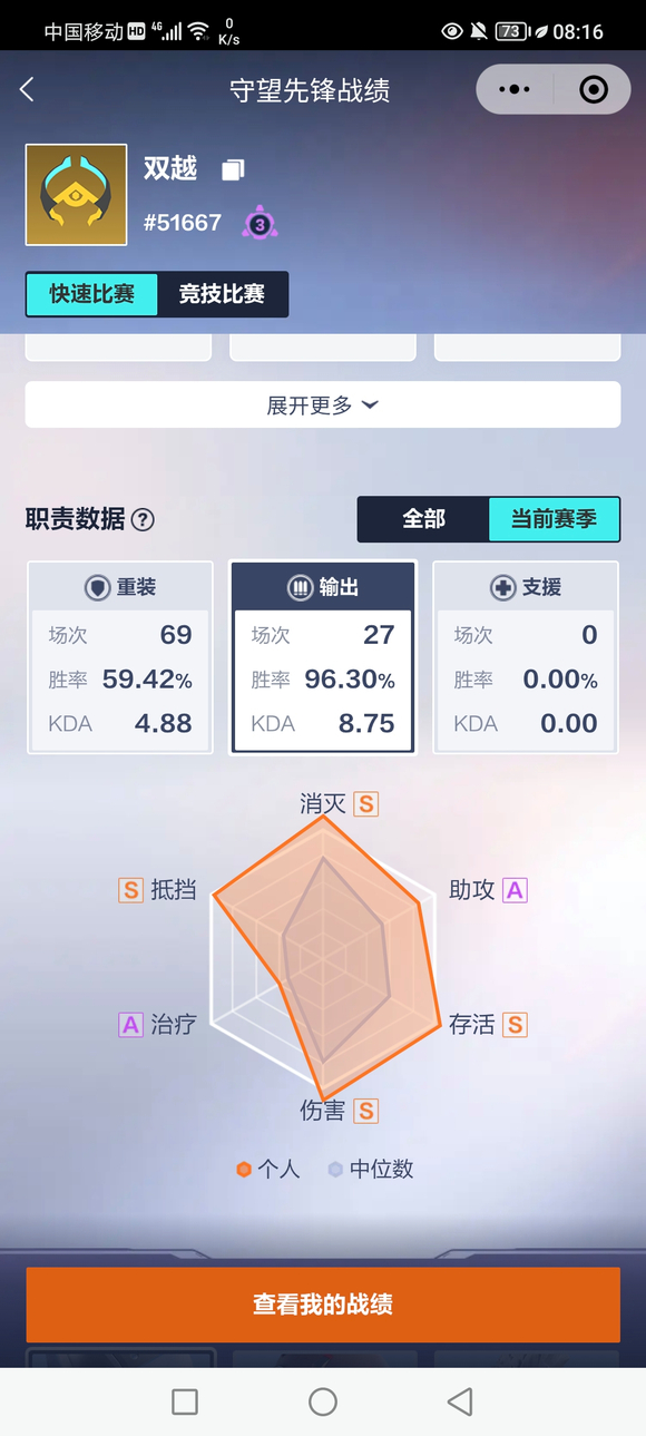 27场还是少了,再打就要elo了,可以永远相信ow的elo