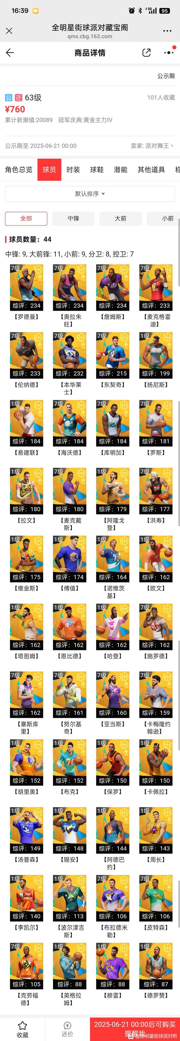 只有高级时装和词条球鞋值钱,球员一个满突满天赋也就100-200之间。