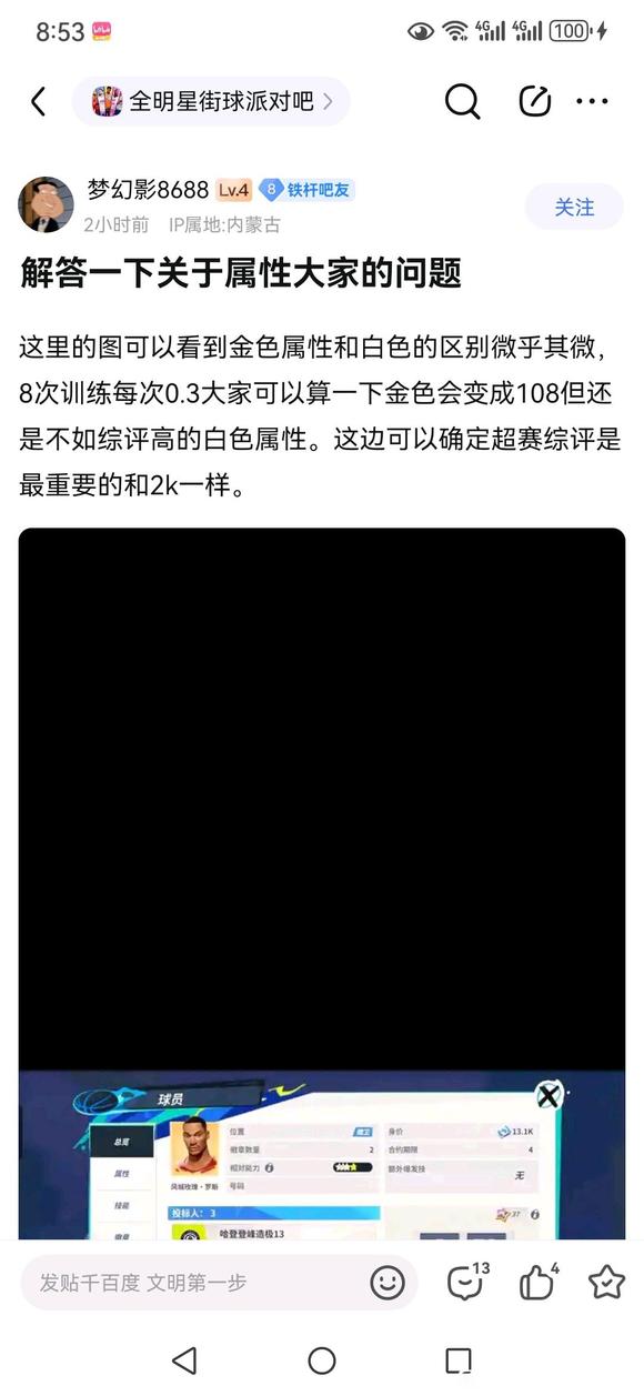 还有个回复被他删了,大概就是,这模式有专项训练,假如训练一个属性同样的次数,金色能到160,紫色150,蓝色140,白色130,那么金色到150后就可以把多余的次数训练到其它属性上
