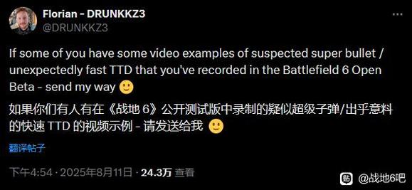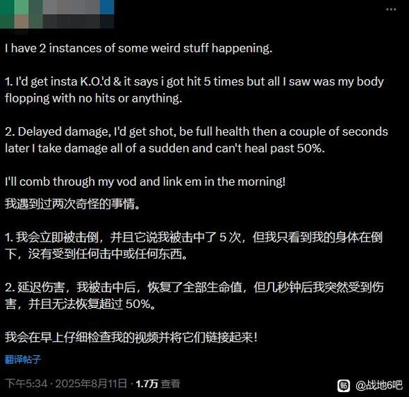 | 在《战地6》公开测试期间,官方发现玩家的死亡时间(TTD,Time To Die)过快可能是一个bug,并正向玩家搜集信息协助修复。 在个人社交媒体上,游戏的首席设计师Florian Le Bihan向玩家公开收集测试期间出现死亡时间过快或超级子弹问题的数据和报告,截至发稿,该条推文已收获176条回复,其中不少都附上了相应的视频录像。 另外还有玩家反应称遭遇到了一些奇怪的情况,比如可能是在之前被击中了但却没有任何反馈,HP条也没有扣除,在承受下一波伤害时又开始快速扣血,产生了死亡很快的错觉。还有延迟受伤,被击中后仍是满血,但几秒钟后又突然掉血等等情况。 目前《战地6》公测服务器已经暂时关闭,开发团队目前正在积极收集玩家反馈并及时修正,预计将在8月14日至8月17日的下一轮公测中修复或优化这些问题。 ![]() ![]() ![]() |
