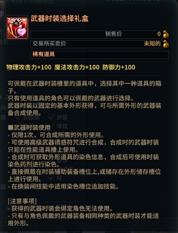 本质就是武器的时装,通过高级诱惑把物品武器变成时装。外观基本是新手武器样式。实惠点可以买个基本皮挂着,反正看久了都腻。以前送高诱,现在要买。