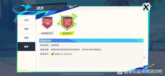 两徽章非常优秀,面板白色的略多了一点点,不过好在数据都培养到100+了,不然培养成本很大,总体来说我觉得冲着这两徽章可以入手。唯一的遗憾是缺了进阶天赋那个抗干扰的天赋