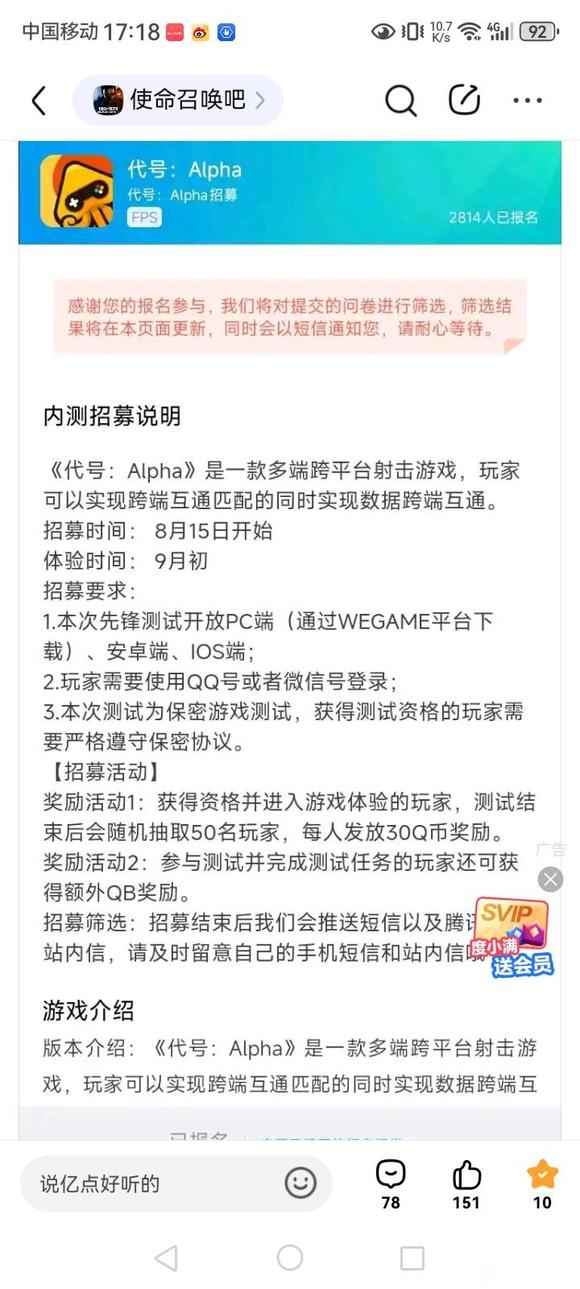 : 腾讯fps新游,类似cod21?我也不会转发,想看完整版,使命召唤吧有😅