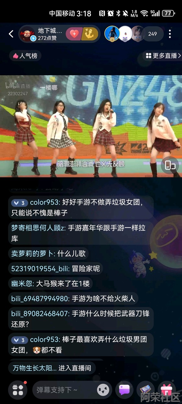 : 嘉年华直播请个什么女团,谁jb看啊?还指望从手游玩家里面吸粉变成追星fan吗?玩dnf手游的明星都不追,更别提什么拉几女团。只能说不愧是棒子游戏,没事就喜欢弄什么b男团女团,✓都不看。你要是弄个肥宗和井盖女团 ...