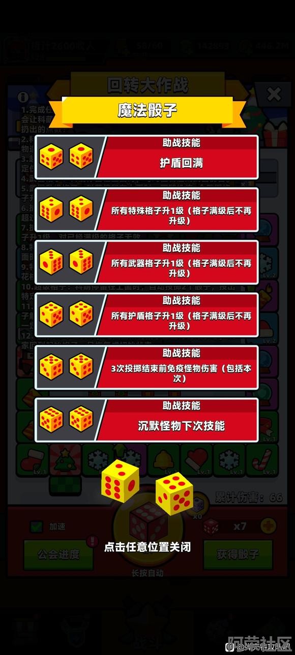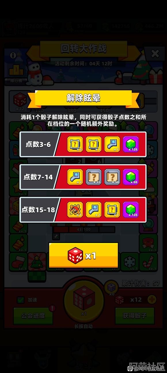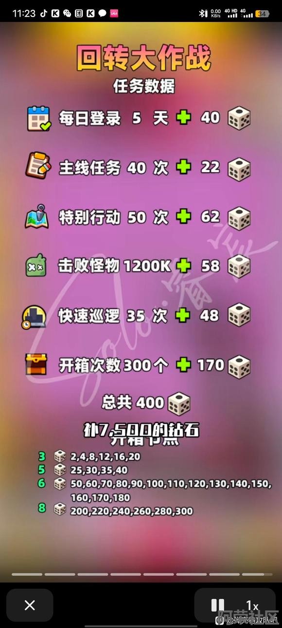 | 回转大作战活动攻略(北北) 1、新活动基础玩法:做任务,拿骰子,使用骰子获得随机点数对boss造成伤害。可以长按自动,应该就是运气活动,没有保底。 2、魔法骰子:估计是等boss血量很少的时候,用魔法骰子一击必杀,这样可以省1个2个。好像是初始点的圣诞树伤害最高,踩和经过都有伤害,其他的就选自己等级高的冰还是火伤,最高好像是15点伤害。有待补充!不好意思。其他的我也没想到魔法骰子怎么用了。 3、开箱20个得8个骰子道具,也就是1600钻石的钥匙得1200的道具,还行,可以用钥匙开满300箱子。 4、方案一:开箱300,进度到400,补钻7500,进度到450,拿神器核心。开局游戏给了5个,还有每天5个魔法骰子,估计不用7500钻石。最后一天再看。 方案二:开箱180,进度到352,补钻4200,进度到380,拿s自选。 方案三:氪金的,到进度850拿第2个神器核心,预估开箱300,补钻67500。 5、晕眩状态:得到的奖励不足150钻石,不要用魔法骰子故意晕眩。全自动就行了。 6、活动的公会进度:我看看今天大手的公会能不能做满吧,能的话我通知。10000/36=278,活跃公会应该很容易做满。 7、排行榜:s自选最高,不知道节点,等通知。 8、橙汁公会收人,目前13个公会了,5个高级,6个中级,2个初级收人。可以看我主页简介加联系,一起冲限时远征,也能加交流群。 ![]() ![]() ![]() ![]() ![]() ![]() |