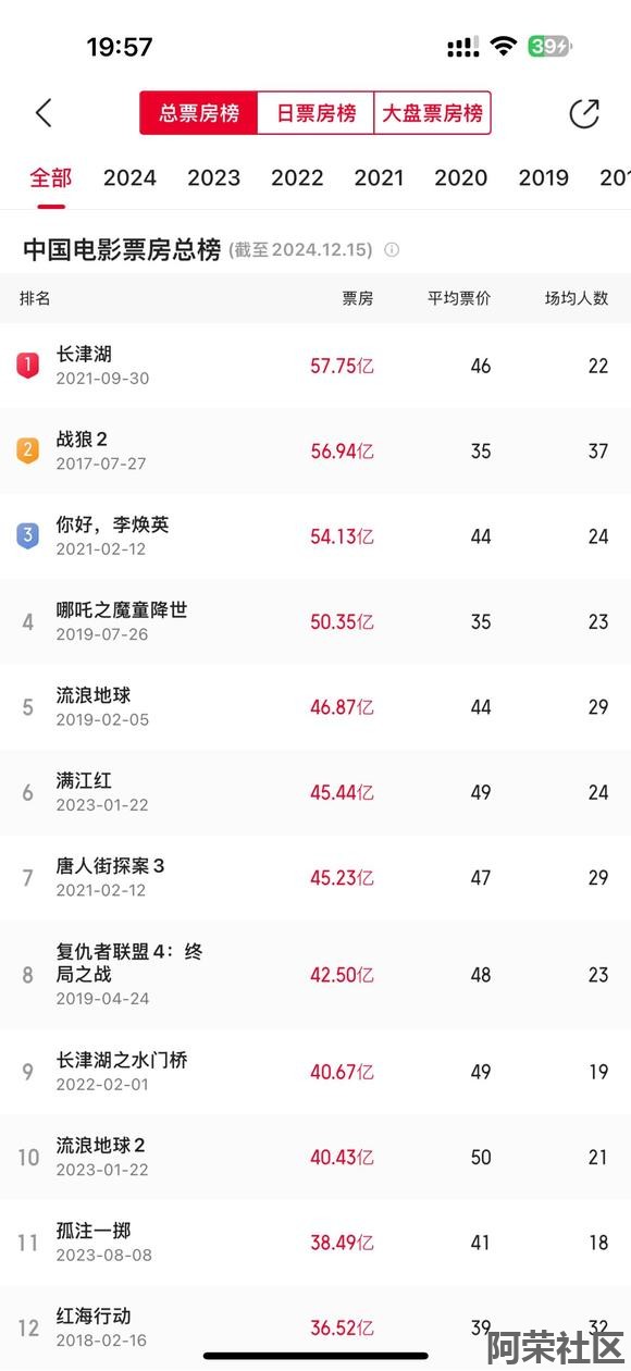 四字纯蹭的票房啊,长津湖1.2吴京带,满江红沈腾带,去掉这三部才是他真实的票房