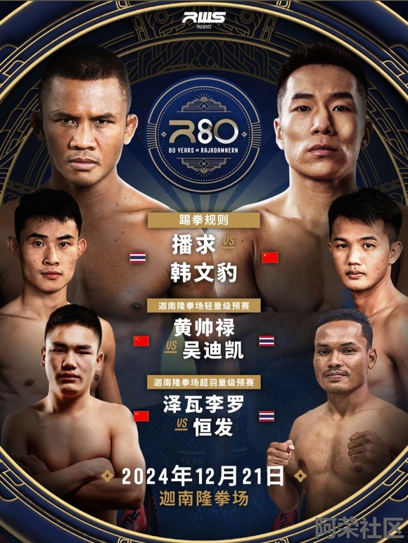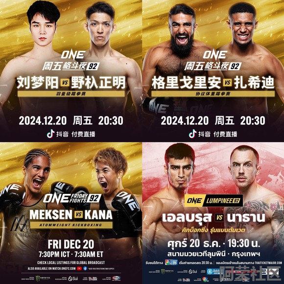 多场精彩的踢拳大战将密集上演。 首先是今晚进行的ONE周五格斗夜92,中国踢拳新星刘梦阳首秀对阵日本名将野杁正明, 马拉特回归对阵新星扎西迪, 另外还有踢拳女王梅克森 VS KANA,五连胜奥斯曼诺夫VS内森·本顿共四场踢拳比赛。 本周六,也就是明天,多场比赛更是目不暇接。武林风551, WLF MAX 63将迎来最后一组最后一个出线名 额,D组阵容:顺利、扎法尔·阿里、彼得丹、汲治泽,不可谓不是又一个死亡之组。另外还有尔康VS加布尼亚,韩飞龙VS彼得莫拉克, 杨明、陈涌辉等明星阵容。 同天还有rise和glory合办的65公斤地表最强八人赛, 阵容荟萃了佩帕侬、 米格尔·特林达德、亚伯拉罕·维达勒斯、贝尔简·佩波希、查德·柯林斯、原口健飞、白鸟大珠、李星玄。 另外在21号晚上,RWS迦南隆80周年纪念赛,头条主赛将上演播求VS韩文豹的超级踢拳大战! 踢拳粉可以燥起来了!![]() ![]() ![]() ![]() |
