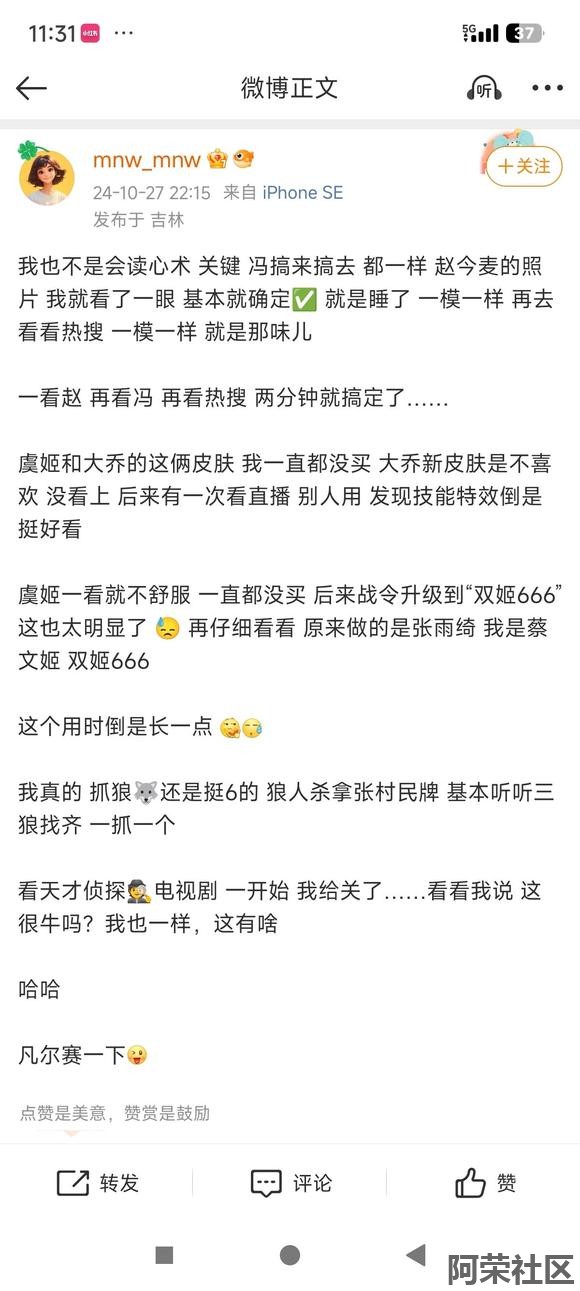 我无意间看到一个女的造谣杨紫赵露思迪丽热巴和一个男的睡了的瓜,然后就去看了看她的微博,对于其他的女明星疯狂造谣到了肥肥这就立马正常的夸上天。杨紫告了她两次了,都罚款了还不停歇自己都是个女的还一直造谣别的女明星,说话也是颠三倒四的但是到了肥肥那里突然就正常了捏