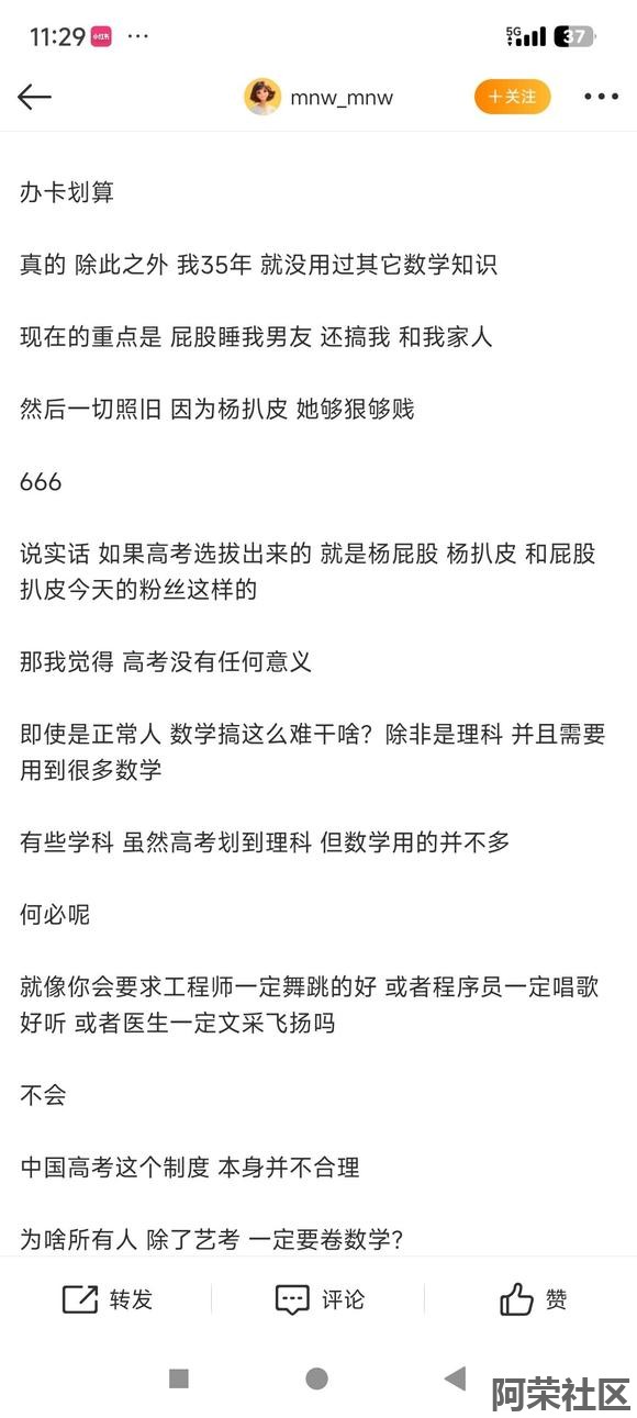 真是鱼找鱼,虾找虾,乌龟找王八,什么样的烂人就会吸引什么样的烂粉丝。美子小姐的粉丝里还有大把的恨国者,可不巧了,美子小姐自己就闹出尾气少女这种丑事,难怪她在知乎那种媚外平台人气高,一块烂肉当然爱招苍蝇。