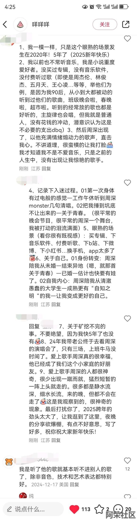 南昌场结束了!从盛夏的南京场,到诗意秋日的苏州场,直到小雪初冬的南昌场,2024周深9.29HZ巡回演唱会在我这里就结束了! 还记得苏州场结束的时候,极限赶火车回去,因为我只抢到第二场,当天是周日,所以必须要当夜返回南京。 在回去的火车上,幸运的遇到几粒米,我们挨着坐在一起,这是我在现实生活中第一次遇到活的生米。 我有点紧张也有点激动,同时也有点担忧。 因为我一直坚定的把自己当生米,但又时常会感到心虚。 心虚的原因可能是:我的超话签到只在2020年的时候,坚持过几个月,后来就不看超话不签到了;微博也只在2020活跃过几个月,给深深转赞评了,后来也荒废了;音乐软件平台只听深深唱歌和评论,却从来不知道要收藏,要做数据。 二专反深代词和演唱会也直到官宣到南京,我才知道,因为5月前一直忙着会计专业考试,心里有愧疚,是对自己的,因为我那么喜欢周深却错过那么多重要的时刻。 我以渺小爱你,是直到南京演唱会现场,我才第一次知道听到,不敢想还有多少歌曲是我漏掉的……跑题了,当时听着生米们聊天,听她们熟练的抛出各种去过的场次,听过的歌,参加过的活动……本来蠢蠢欲动要发言的我又给憋回去了。 我自卑了,因为有些歌我没听过,有些现场我也没看过,专辑也只有深的深实体专和每个平台一张的反深代词。 但是生米太好了,主动cue我,我诚实的说了我的情况,她们肯定的说我就是生米,太好了,我喜欢生米,愿意做一颗米。 其实,在我的真实的生活里,深深只占到很少的一部分。 我有自己的工作,自己的生活,自己的家庭,自己的爱好,我喜欢踢球看球,我喜欢历史,我喜欢看小说,喜欢傲慢与偏见,喜欢红楼,喜欢西厢,喜欢史记,喜欢晋江,喜欢起点…… 只能说深深的出现,让我开始喜欢听音乐了,在我根深蒂固的爱好里,硬是挤进我的心里。因为深深我开始稍稍了解一点娱乐圈,也眼熟一些明星,天知道,这完全不是我的赛道啊。 不过深深带给我的陪伴和愉快一直都在。甚至以前一直觉得买明星代言的粉丝很傻,没想到现在真香,稍稍理解了他们一点。 因为我自己是一个经济独立的成年人,以前买东西也是看眼缘的随性买,那既然都是买,我为什么不买我喜欢的深深代言的呢! 所以之前买爱格杂志的时候好开心,买有深深歌曲的电影好开心,买代言的日化好开心,买天猫精灵好开心……总之就是好开心,不知道有没有人和我有相似的心情。 人生的第一次演唱会就是深深的,以前从来没想过要去看演唱会。 从南京场的生疏惊奇,到苏州场的愉快无极,到南昌场盛筵难再的伤感,所有浓烈的情绪都是周深带给我的。 甚至他让常年窝在江苏的我,出了省旅游,去了贵阳,来了南昌,并发自内心的觉得这样旅游真的很不错,希望明年可以跟着周深去到更多的城市,领略当地的风俗民情,走遍大美中国! 啰啰嗦嗦写了一大堆,可能是今晚南昌场十送红军,花开带来的那些伤感的情绪,啊,写到这里又暴露了,关于花开的那些一巡的故事我都不知道!虽然不知道但我就是生米(大声确定,不心虚)只是在现场感受到深深浓烈的情绪了,同频的分外伤感;也许是一种对自己的忧心,因为随着演唱会的结束,可能我又会开始一些时常错过深深的时刻,都让我有一股冲动,必须记录下此时此刻的感受。 古人借景抒情,赋诗写词,我都不会。 只能对着窗外南昌的夜雨,在酒店的昏暗的台灯下,敲下这些文字。 最后再很俗但出自真心说一句:我喜欢的歌手叫周深,他唱歌真的真的真的很好听!我好爱他,谢谢周深! 2024年11月24日 于南昌 ![]() ![]() |
